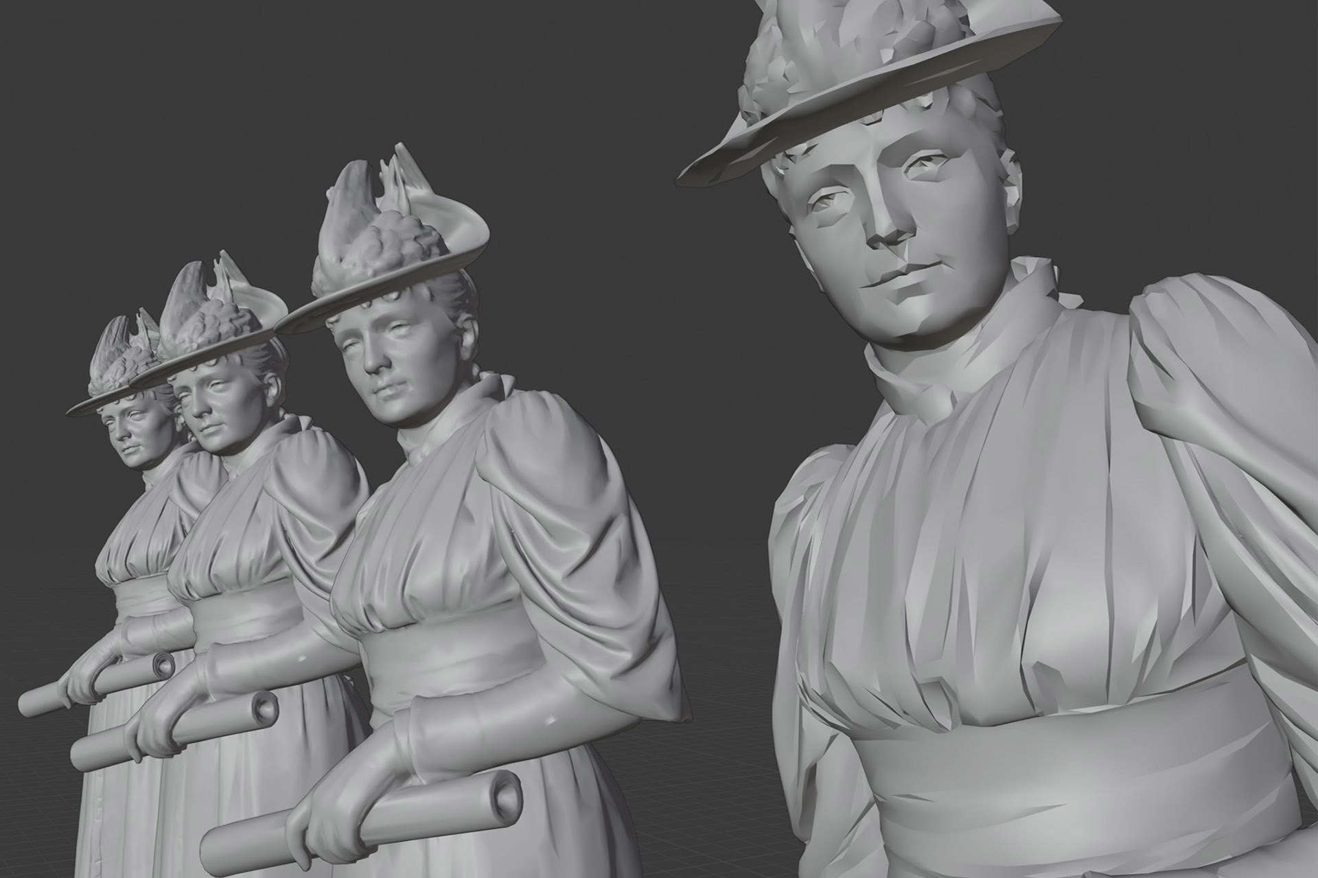 Now as artists approach a sculpture Unity will use the low poly version when it's in the distance, swap in the medium detailed version as they get closer and finally swap in the high poly model when they are up close.